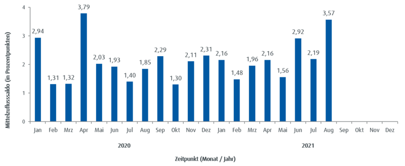 ebase Trendnavigator ETF August 2021: ETF-Käufe übersteigen Verkäufe um über 250 %
