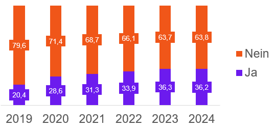 Grafik 1: Vergleich 2019 bis 2024: Ist Ihnen der Begriff Robo Advisor bekannt? (alle Angaben in Prozent)